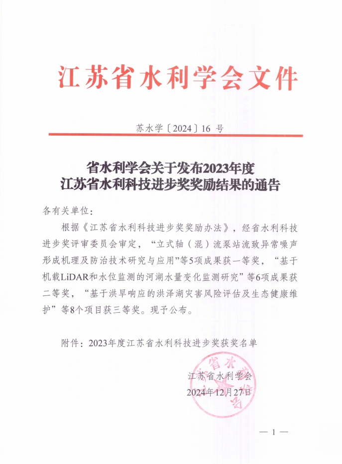 | 公司喜获2023年度江苏省水利科技进步奖一等奖作者:admin 来源: 日期:2024-12-31 16:43:58 人气: